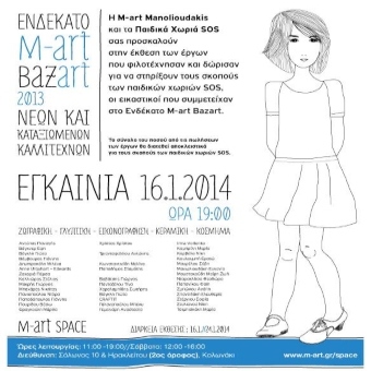 The 11th Bazart is an exhibition, presenting the work of emerging and renowned artists, which was donated to support the SOS Children’s Villages of Greece.