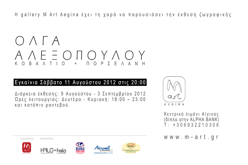 From the 9th century in China, with a stable historical continuity, the cobalt as a material, reached Aegina in 2012. It is a complex technique with only means, the cobalt, a blue color – something between the color of the sky and the color of the sea – and a porcelain plate instead of canvas. Seldom on these works you will find chunks of gold or gray. In China, porcelain was considered a luxury object and later on, a piece of art that entered the houses of people, a modern trend that is slowly introduced in Greece. Olga Alexopoulou is the bringer of this trend in Greece. With her favorite blue notes, she paints on small and large porcelain pieces depicting empty landscapes flanked by distant mountains. The feeling of loss, the distance, is evident in her works, the atmosphere of a seemingly dead landscape which hides the greatest source of life within the perpetual motion of water flowing in the rivers.