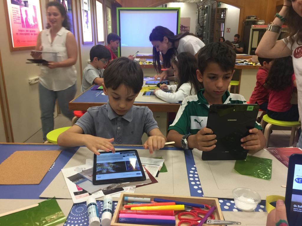 Moreover, in OTE Group Telecommunications Museum, a series of technological workshops for elder people is taking place. Education never ends in school and university, the elder visitors of the museum discover the amazing world of technology through an interactive workshop. Using tablets they navigate in the world wide web and create their own works of art.