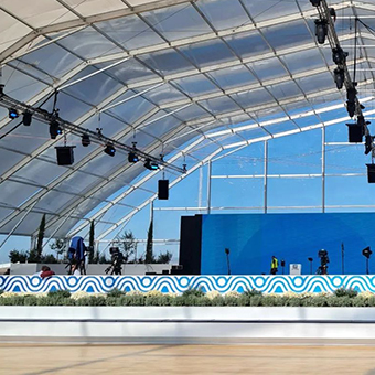 Those structures were framed by 350 mediterranean plants that gave the impression of a mediterranean landscape and linked the venue to the future look and feeling of The Ellinikon Project after its completion. All plants are getting replanted after the ceremony.