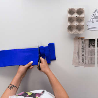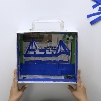 Με έμπνευση από το έργο “Οι Βαλίτσες” του Αλέξη Ακριθάκη, ενός από τους σημαντικότερους εκπροσώπους του Ευρωπαϊκού Μοντερνισμού, τα παιδιά επιλέγουν ανακυκλώσιμα υλικά μέσα από τη “βαλίτσα τους” και δίνουν μορφή στα σχέδια -πατρόν του καλωδιακού πλοίου “Θαλής ο Μιλήσιος” και της εμβληματικής τηλεφωνικής συσκευής “Tamura”.